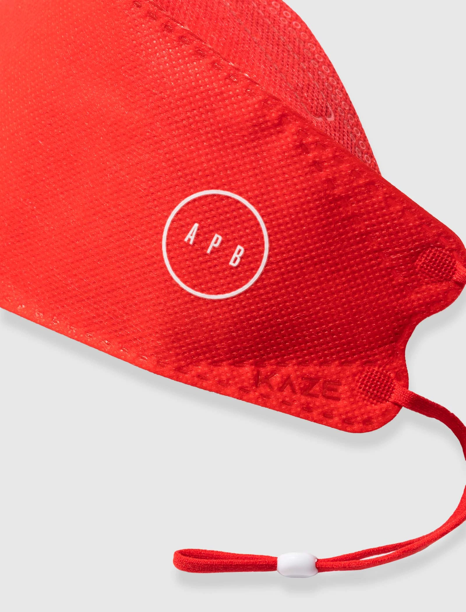 Lightweight face mask. Fold-in design. Graphic logo at front. Adjustable ear bands. – 3-ply, class-A material SKU: APB-KAZE-MASK-RED