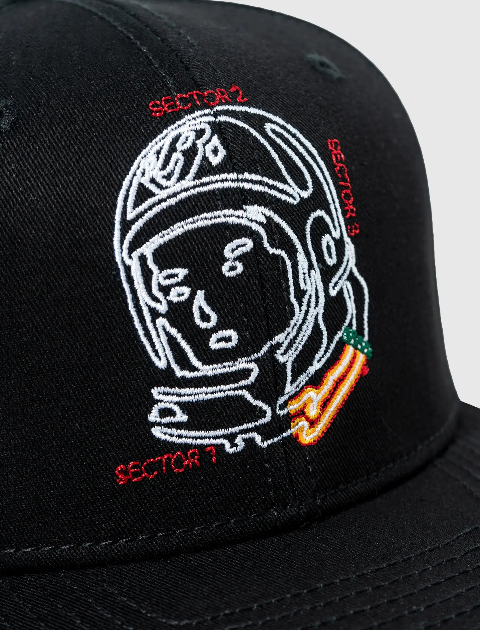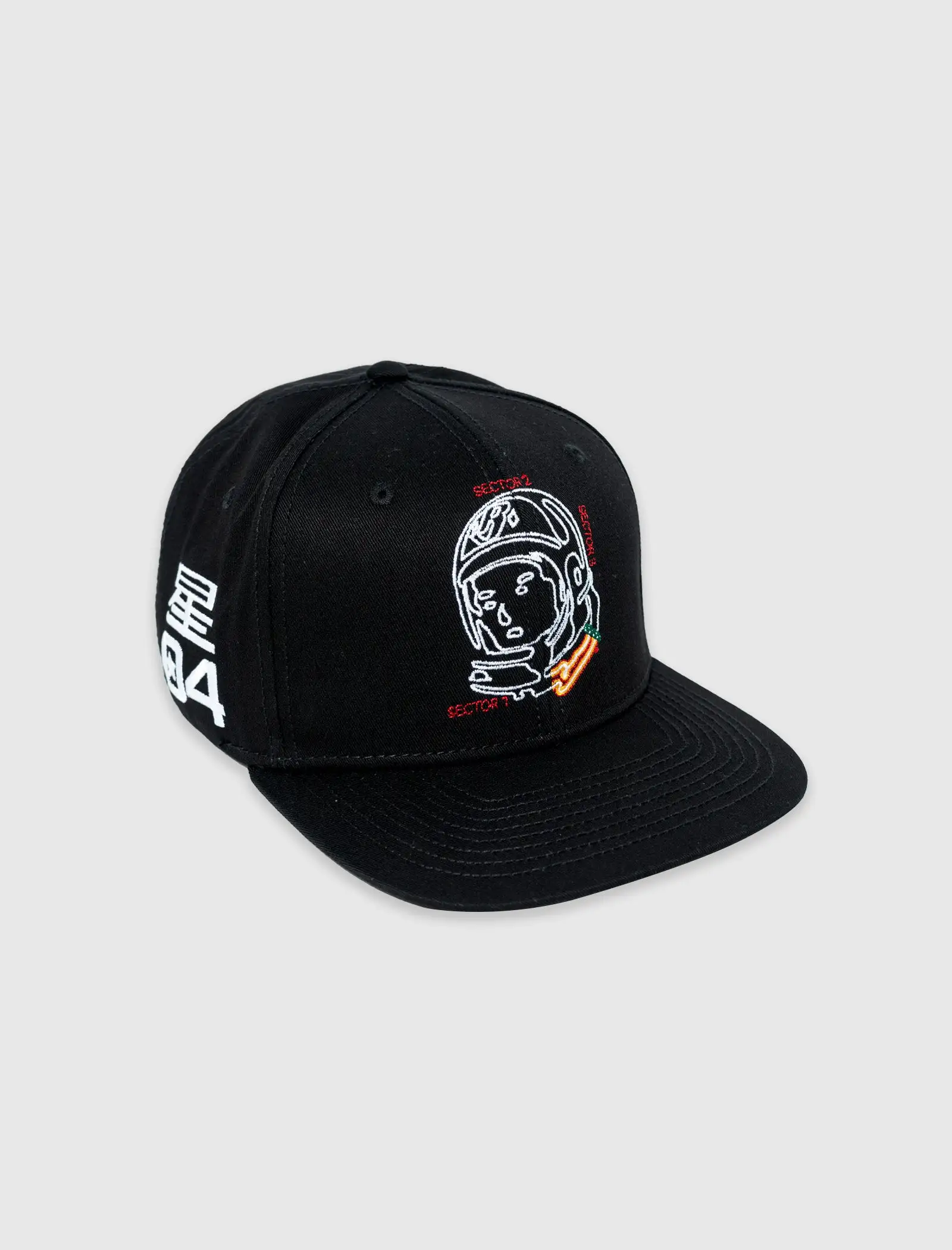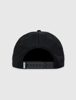 Cotton canvas snapback hat. Flat brim. Embroidered logo on the front panel. Embroidered graphic logos on the sides. Adjustable snap back closure. – Cotton SKU: 821-6800-BLK