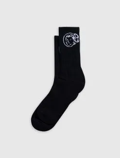 Cotton-blend socks. Ribbed detail at top. Embroidered astronaut print at sides. – Cotton/Polyester/Spandex SKU: 821-1801-BLK