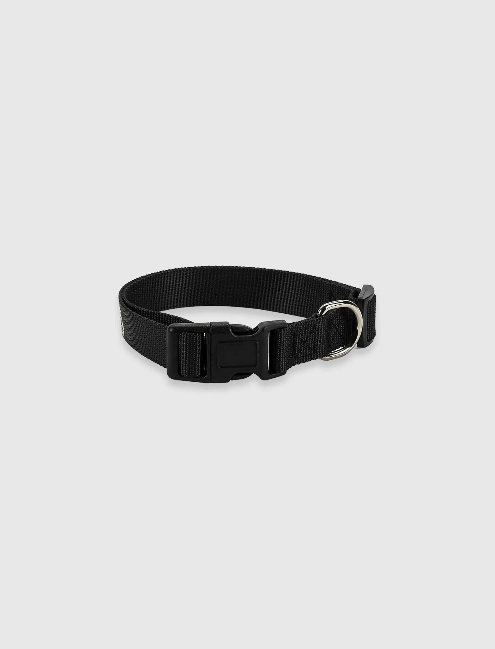 Nylon dog collar. Silver-tone hardware. Graphic logo text. Plastic push-lock closure. – Nylon SKU: 821-0815-BLK