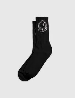 Ribbed cotton socks. Jacquard knit logos on the sides. Calf-length. – Cotton SKU: 821-3804-BLK