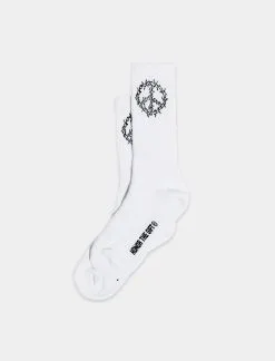 Ribbed knit crew socks. Jacquard knit logos on the sides. Calf-length. – Cotton and elastane SKU: HTG220382-BONE