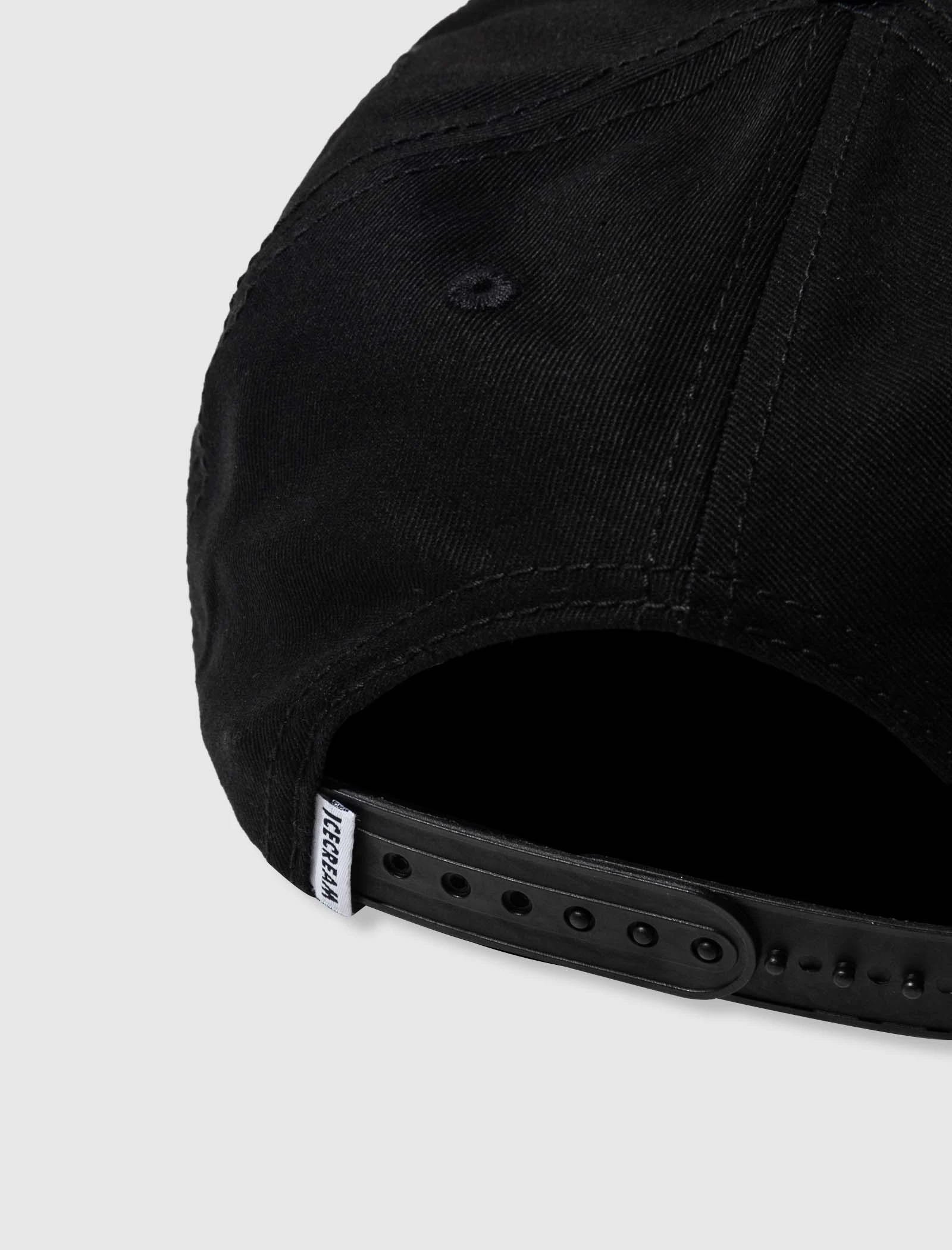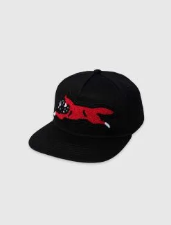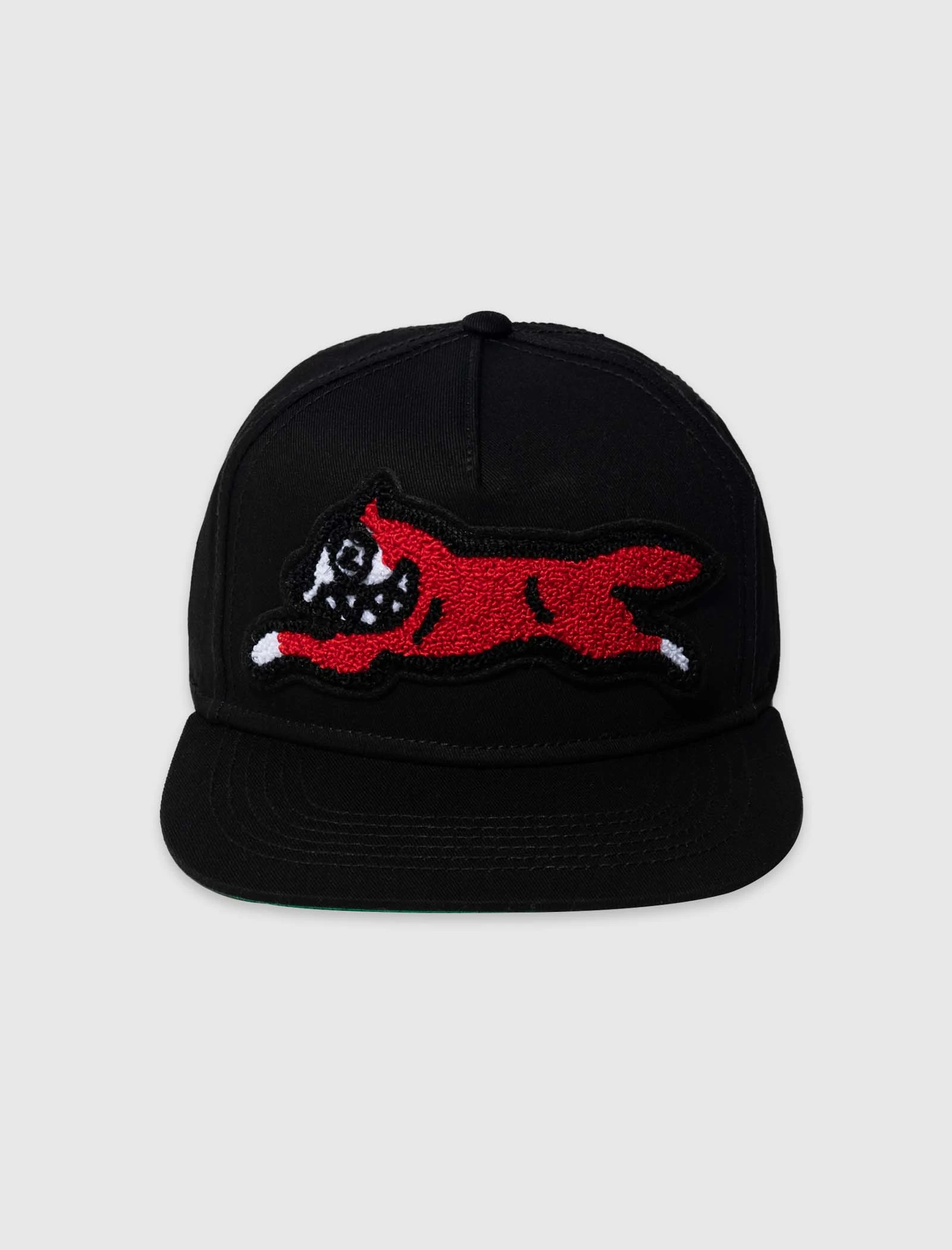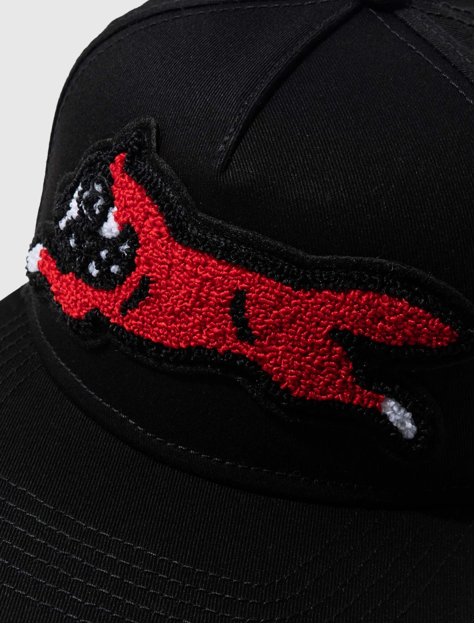 Snapback hat. Flat brim. Six-panels. Embroidered Running dog patch at front. Woven brand label and snapback closure at back. – 100% Cotton SKU: 421-1802