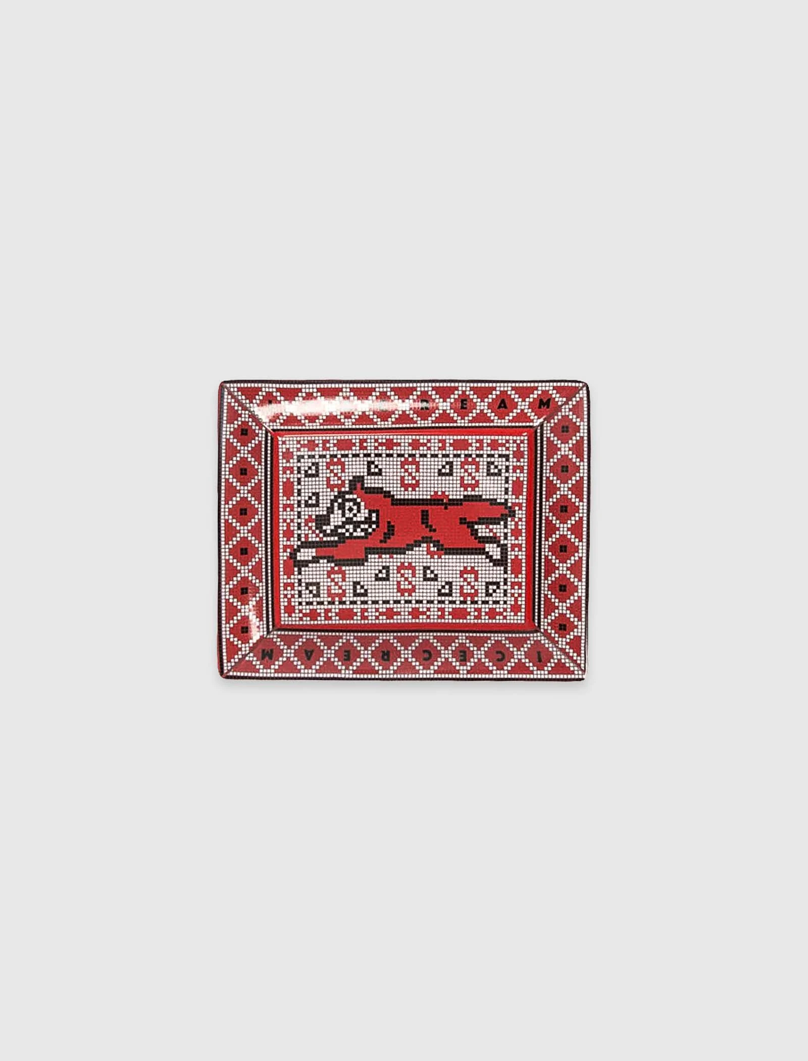 Ceramic valet tray. Graphic prints, logo text and logo print at top. – Ceramic SKU: 421-5806-RED