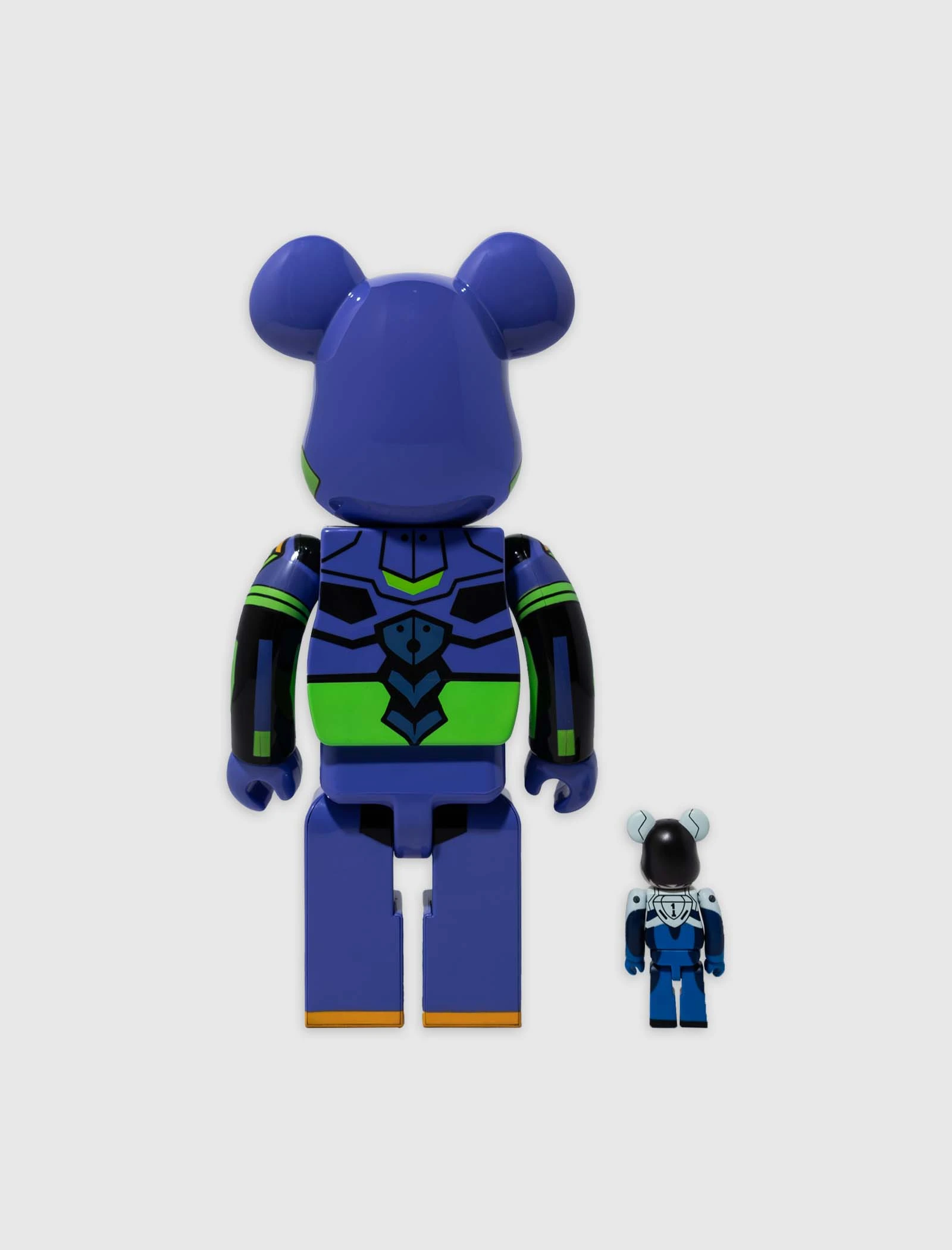Evangelion Shogo-ki 400% and Shinji Ikari 100% Be@rbrick set. Vinyl figures. 400% figure is approximately 11 inches tall, and 100% figure is approximately 3 inches tall. – Vinyl SKU: 4530956581941