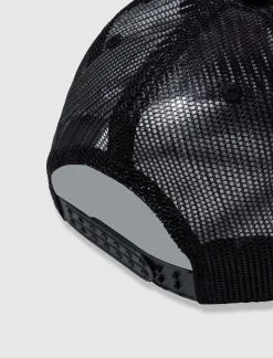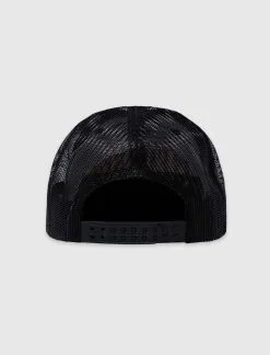 Trucker hat. Neoprene front panel. Embroidered logo on the front. Mesh back panel. Snap back closure. – Polyester SKU: P22SU059-BLACK